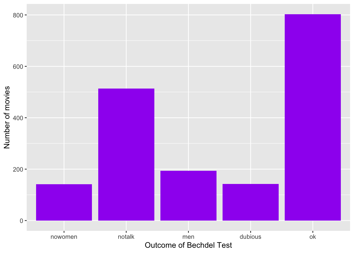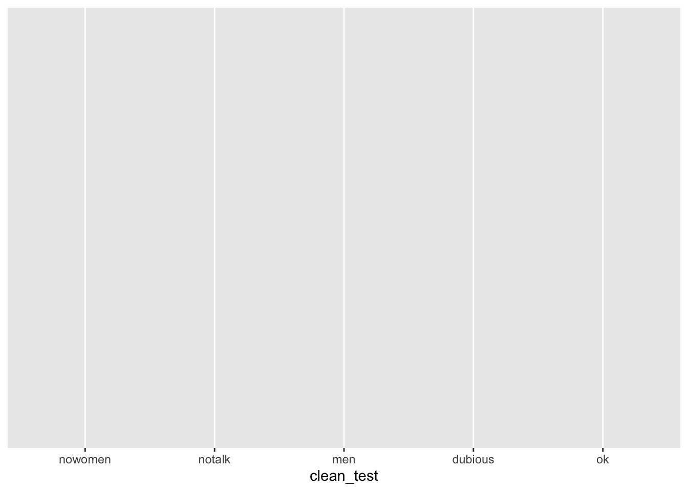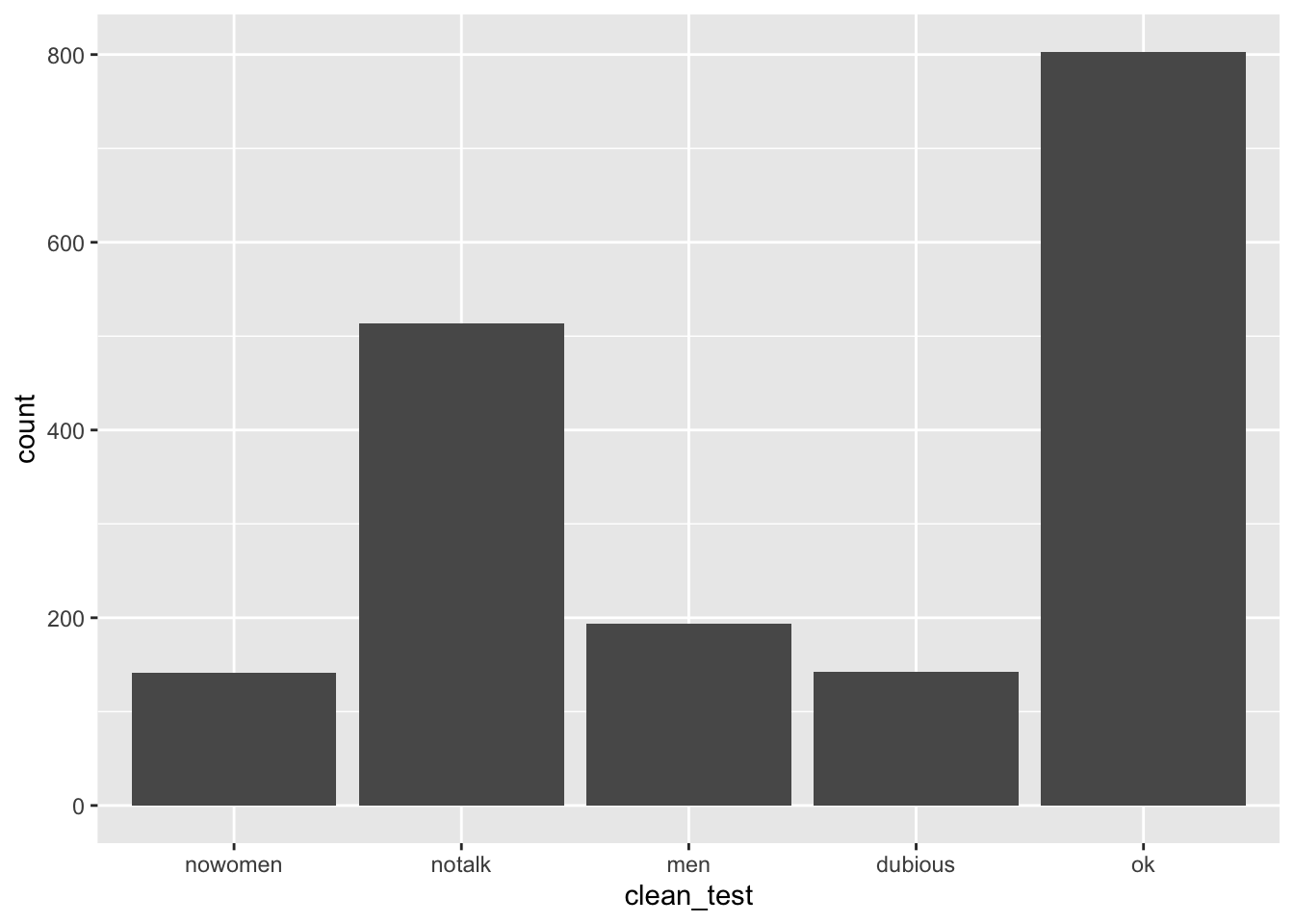 Frequency count of categories in x | table(bechdel$clean_test) |