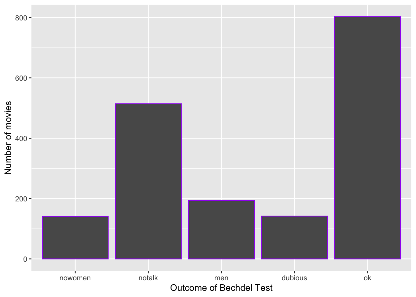 In the fivethirtyeight.com article “The Dollar-And-Cents Case Against Hollywood’s Exclusion of Women”, the authors analyze which Hollywood movies do/don’t pass the test. Their data are available in the fivethirtyeight package: