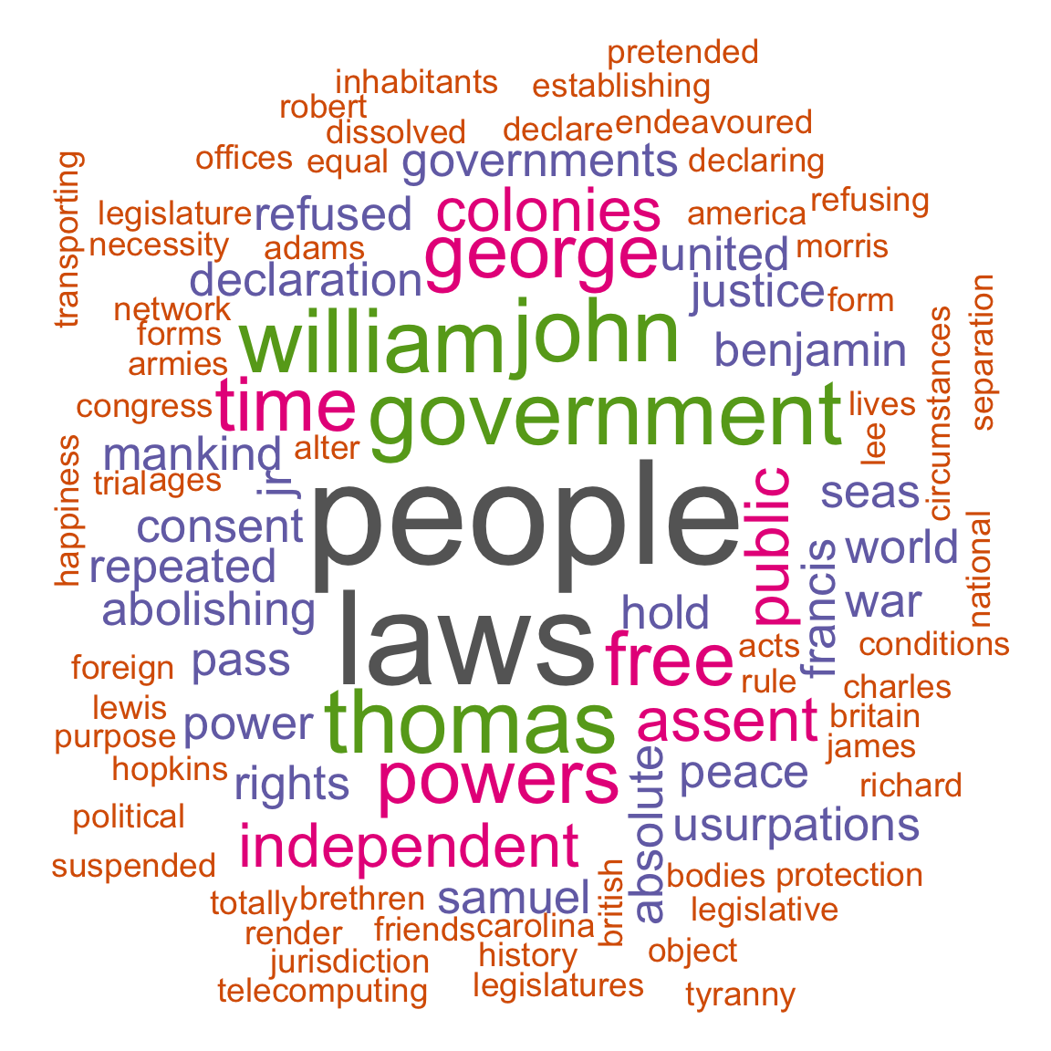 us_dec_sentence## [1] "We hold these truths to be self-evident, that all men are created equal, that they are endowed by their Creator with certain unalienable Rights, that among these are Life, Liberty and the pursuit of Happiness."